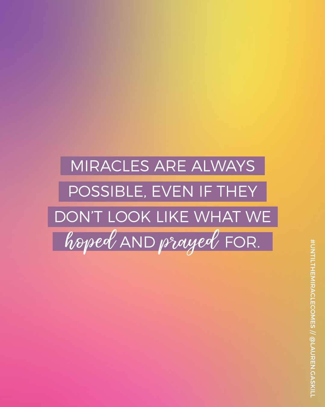 It’s hard to persevere through life’s trials when we are weary of the journey and feel like giving up. But with God’s help, we can stand steadfast until we experience a breakthrough. In Until the Miracle Comes, Lauren Gaskill shares valuable wisdom and lessons learned from 15 years of standing for miracles in her health, finances, relationships and more.